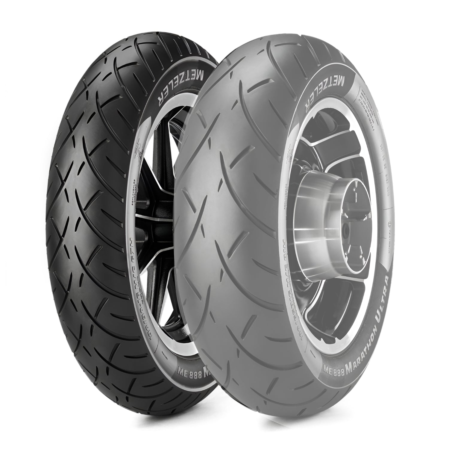 El neumático METZELER ME 888 MARATHON ULTRA es un modelo de turismo diseñado para motos cruiser, touring y sus variantes custom, priorizando un ultra kilometraje y prestaciones superiores en condiciones mojadas, con énfasis en estabilidad y desgaste regular durante viajes largos y seguros. Su estructura incorpora una geometría plana y ancha que converge hacia la pared del neumático, disipando el estrés en la pisada para reducir la fatiga y el proceso de desgaste, junto con una banda de rodadura sólida y rígida que asegura un rendimiento consistente. Los surcos transversales discontinuos, reforzados con "puentes de compuesto", aportan mayor solidez y rigidez, mientras que las paredes de los surcos presentan diferentes inclinaciones para optimizar el ángulo de trabajo en cada posición, mejorando la evacuación de agua y el agarre en superficies húmedas.