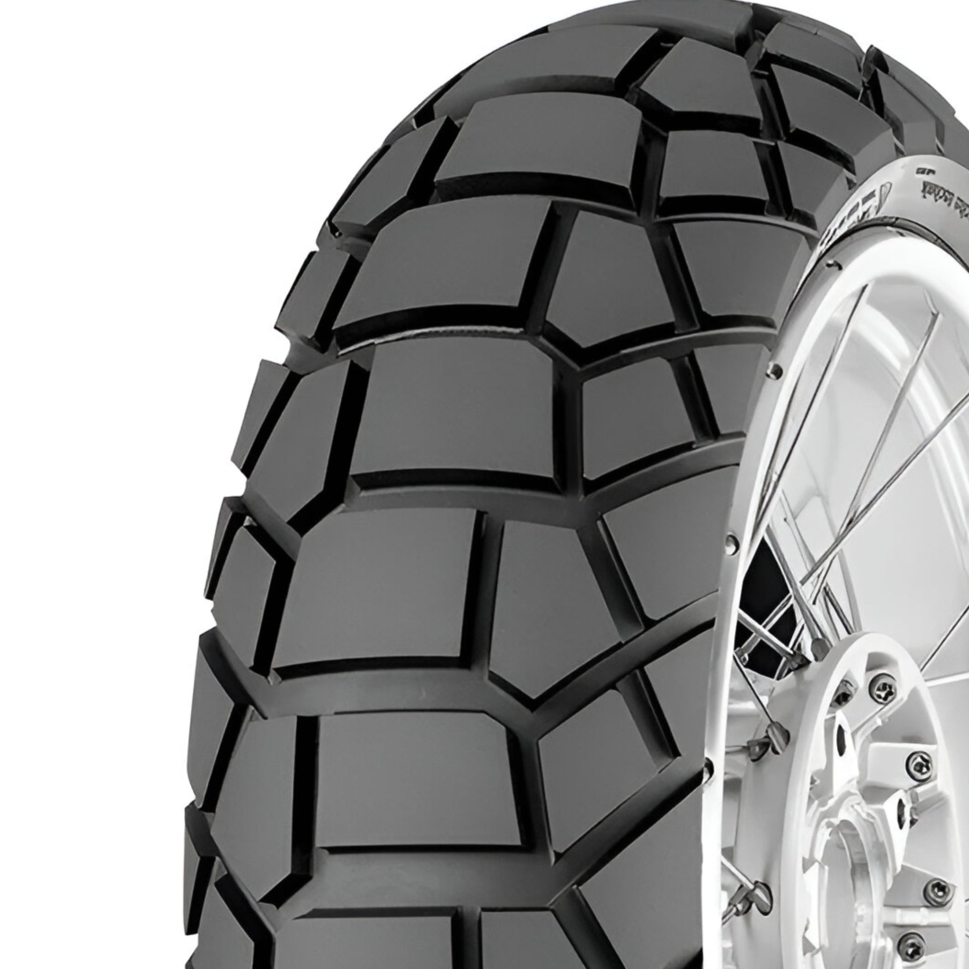 Su banda de rodadura agresiva, con bloques grandes y canales profundos, garantiza una tracción óptima en condiciones todoterreno, mientras que su diseño optimizado reduce el ruido para una rodadura suave y cómoda. Perfecto para combinar con un TKC 70 en la rueda delantera, el TKC 70 Rocks en la trasera potencia las prestaciones off-road, manteniendo un comportamiento impecable en carretera. Fabricado a mano en Alemania con un compuesto de caucho duradero, este neumático asegura resistencia al desgaste y un rendimiento duradero. Ideal para motos trail como BMW GS, KTM 1290 o Ducati Multistrada, es la elección perfecta para quienes buscan explorar sin límites con confianza y estilo.