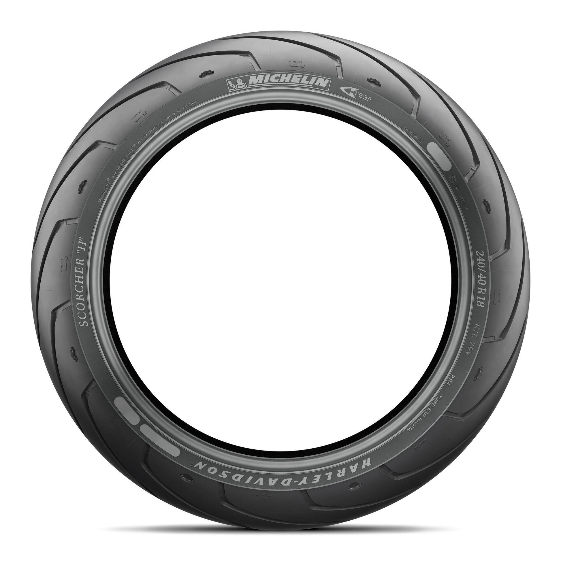 El Michelin Scorcher 11 es un neumático cruiser radial desarrollado en colaboración exclusiva con Harley-Davidson, suministrado como equipo original (OEM) en modelos como V-Rod Muscle, V-Rod Night Rod Special y Sportster SuperLow, con homologaciones para otros años y modelos. Ofrece agarre excepcional en seco gracias a su patrón semi-slick que maximiza el parche de contacto, junto con evacuación eficiente de agua para grip confiable en mojado. Incorpora compuestos derivados de neumáticos de competición Michelin, enriquecidos en sílice (Silica Rain Technology) para durabilidad extendida y rendimiento equilibrado. La carcasa radial con fibras de aramida proporciona agilidad, maniobrabilidad precisa y estabilidad a altas velocidades. Presenta sidewall co-branded con el nombre Harley-Davidson y el logo "Bar & Shield" en el hombro para estética custom.