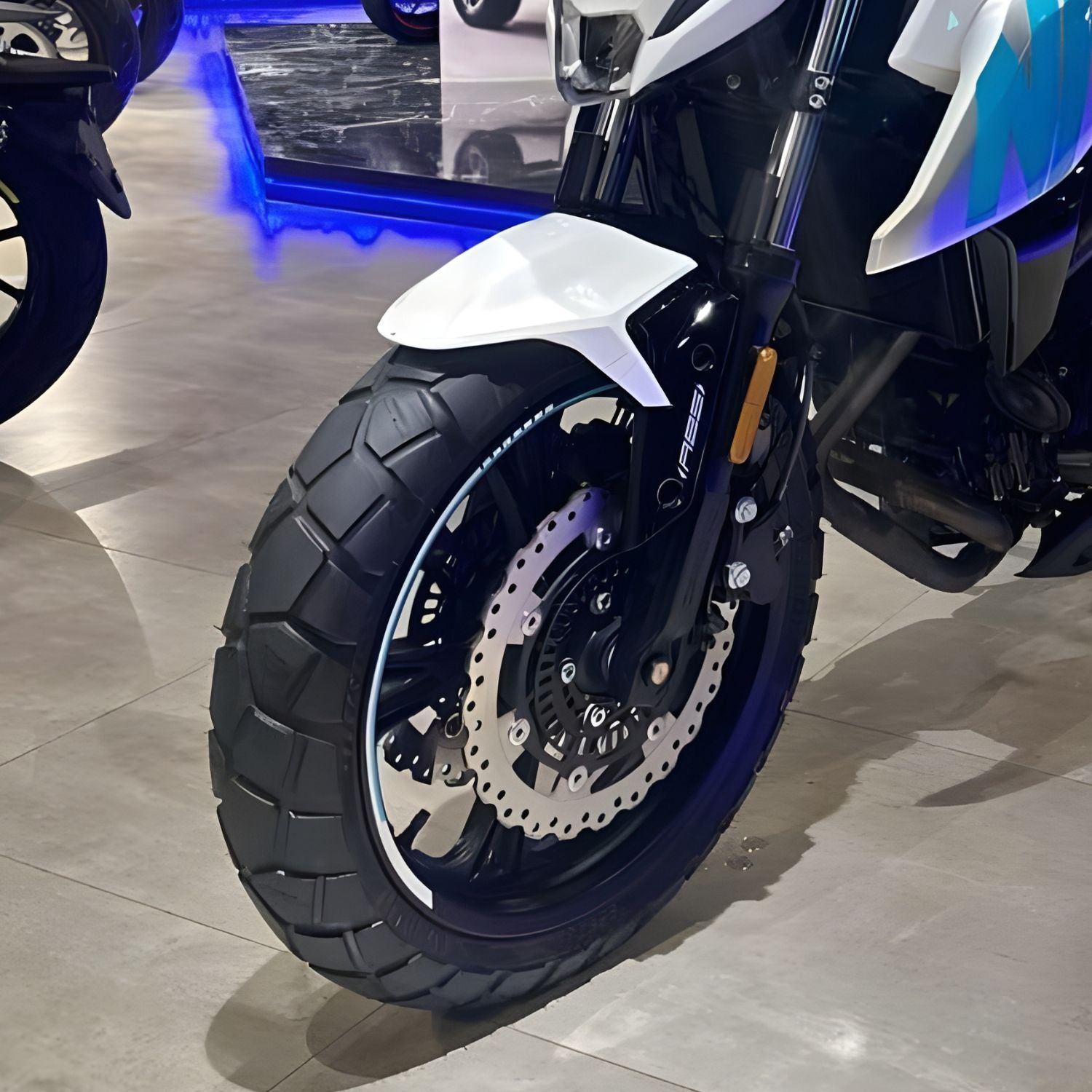 Otras: Motos dual sport y adventure de 250-800 cc con llantas de 17"-21" delantero, como Suzuki V-Strom o modelos asiáticos.
